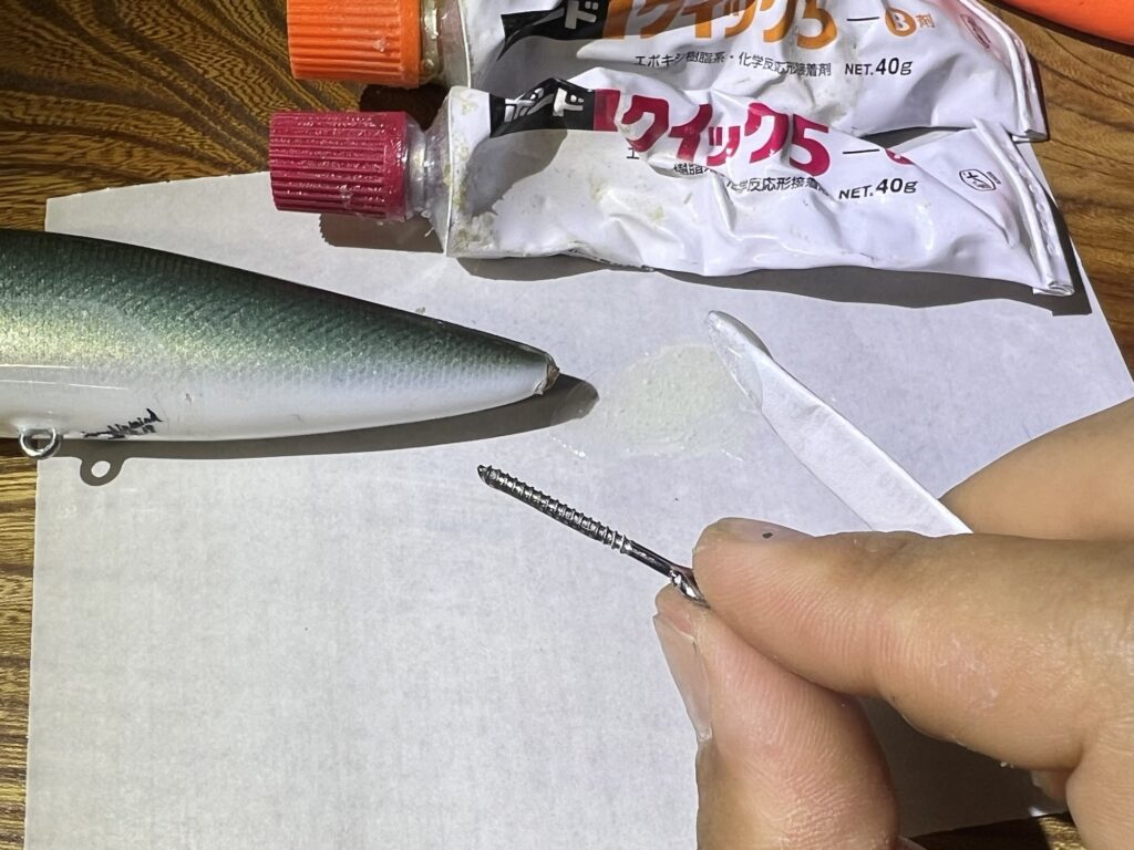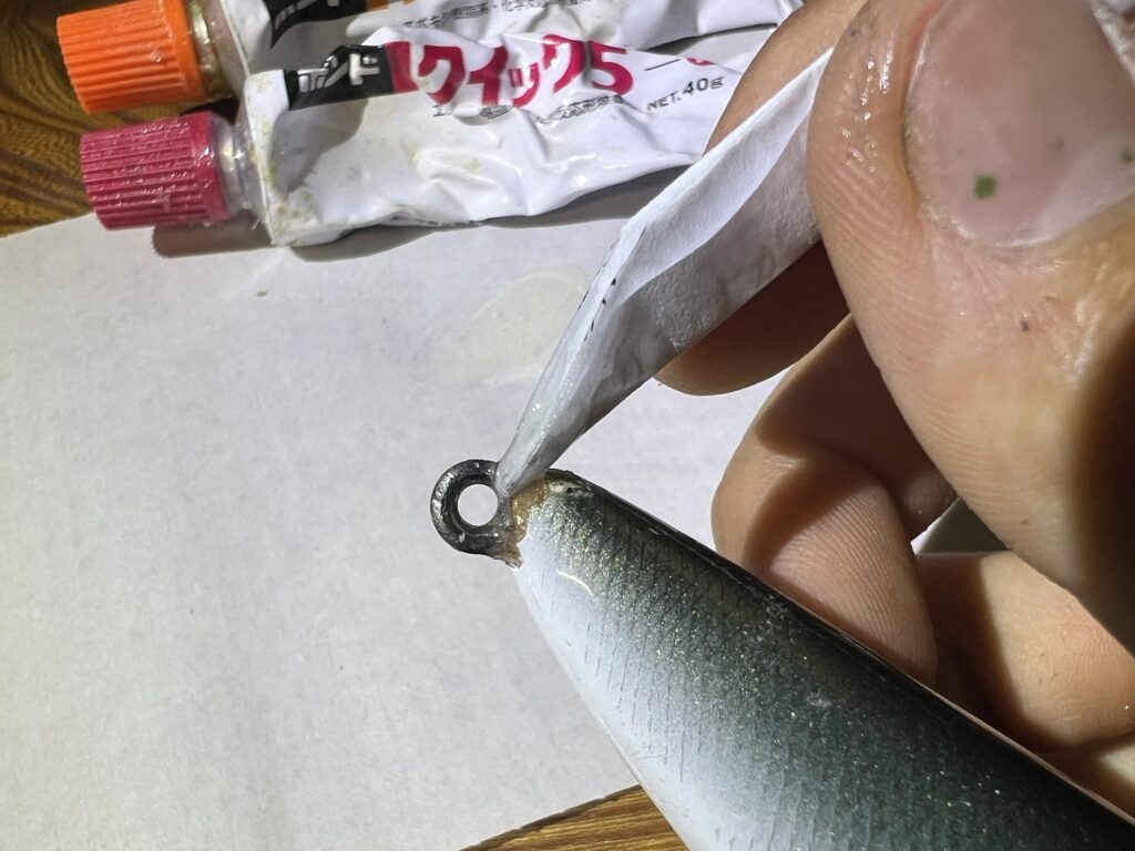 瞬間接着剤をそのままルアーにたらすと液が垂れて悲惨なことになるので絶対におやめください。